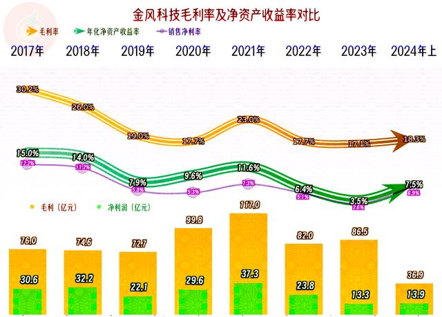銷售凈利率和毛利率總體上是同步的,但最近兩年半也有些許變化,比如2023年的銷售凈利率就明顯比前后兩年,也與其毛利率接近的2020年也要低。凈資產(chǎn)收益率的情況就大不一樣了,最近兩年半的情況都比這之前差一些,相對來說,2024年上半年的“年化凈資產(chǎn)收益率”還不錯。