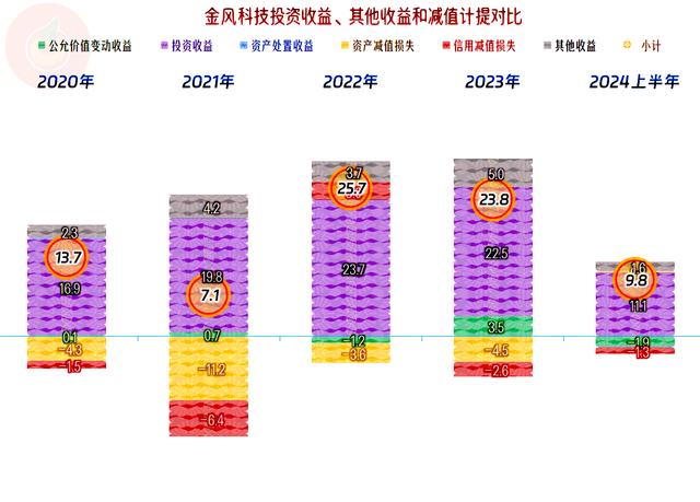 在其他收益方面有很大的影響,因?yàn)榻痫L(fēng)科技這方面的金額相當(dāng)大,特別是2022年和2023年成為其盈利的主要構(gòu)成部分。雖然政府補(bǔ)助的金額并不低,但主要的收益項(xiàng)目還是“投資收益”,除了“權(quán)益法核算的長期股權(quán)投資收益”之外,還有金額也很大的“處置子公司產(chǎn)生的投資收益”和“因喪失重大影響或處置聯(lián)合營公司取得的投資收益”。