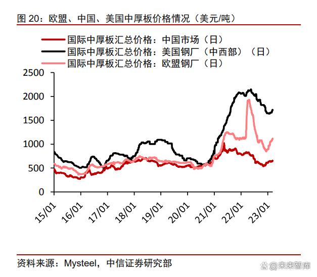 海外塔筒樁基生產(chǎn)成本高昂,國內(nèi)成本優(yōu)勢強化。對比歐洲單樁龍頭 Sif 平均出貨價 格近 2500 歐元/噸(約合人民幣 1.9 萬元/噸),且供需緊縮呈價漲趨勢,我國單樁價格約 0.8 萬元/噸。在原材料成本方面,以天風順能披露的數(shù)據(jù)為例,鋼材、法蘭等原材料成本 占塔筒總成本的 82%,其中鋼板(中厚板)成本占 57%,對比俄烏戰(zhàn)爭爆發(fā)以來的歐洲 鋼材價格暴漲,中厚板國內(nèi)外價差拉大。2023 年 3 月歐盟鋼廠中厚板均價 1100 美元/噸, 美國鋼廠均價 1710 美元/噸,而中國市場均價 649 美元/噸。在人工成本方面,根據(jù)歐盟披 露,歐盟本地塔筒企業(yè)的人均人工成本為 4.8 萬歐元/年,明顯高于國內(nèi)主要塔筒企業(yè)的人 均薪酬。我們預(yù)計塔筒環(huán)節(jié)有望進一步強化國產(chǎn)出海的成本優(yōu)勢,樁基環(huán)節(jié)暫無反傾銷限 制,有望實現(xiàn)產(chǎn)品出口的突破。
