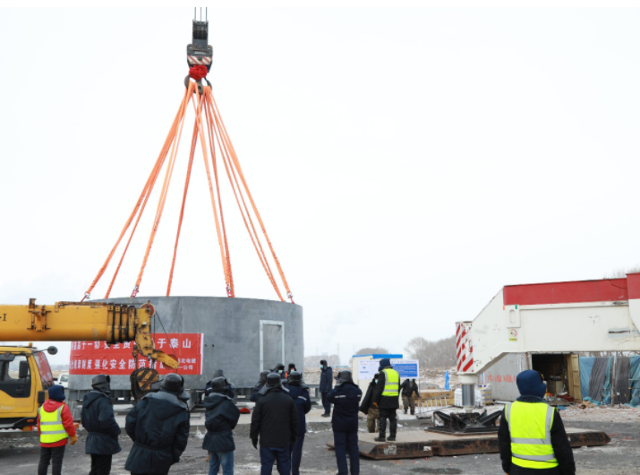在華電黑龍江區(qū)域齊齊哈爾富拉爾基50兆瓦風電項目建設(shè)現(xiàn)場,機器轟鳴,項目施工人員正緊張忙碌地指揮起重車將高3.3米、重達60噸的混塔砼段,慢慢組裝起來,項目正處于混塔組裝的關(guān)鍵階段。