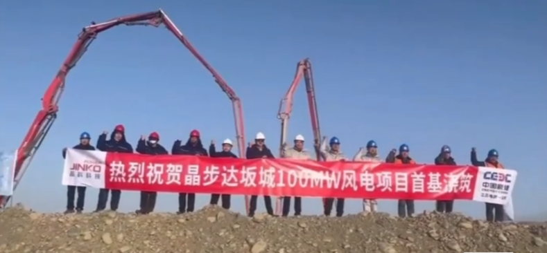 晶步達坂城風電場項目首臺風機首臺風機基礎澆筑完成