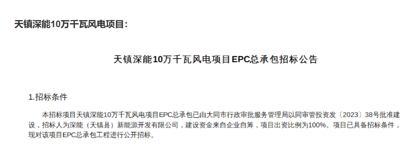 天鎮(zhèn)深能10萬千瓦風(fēng)電項(xiàng)目: