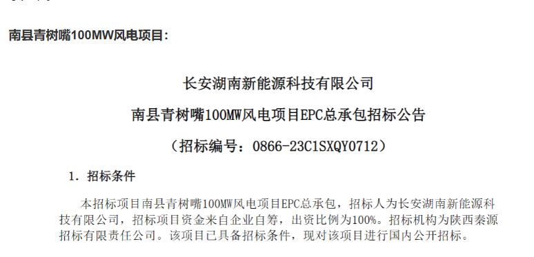 公告顯示,南縣青樹嘴風(fēng)電場(chǎng)項(xiàng)目總?cè)萘?00MW,年等效滿負(fù)荷利用小時(shí)不低于1815小時(shí)。安裝16臺(tái)單機(jī)容量不低于6.25MW的風(fēng)力發(fā)電機(jī)組,輪轂高度不低于160m,采用混塔方式,葉輪直徑不低于191m。