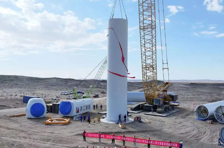 8月28日,由中國水電四局酒泉新能源公司承制的浙新能肅北馬鬃山項(xiàng)目首套筒順利吊裝。