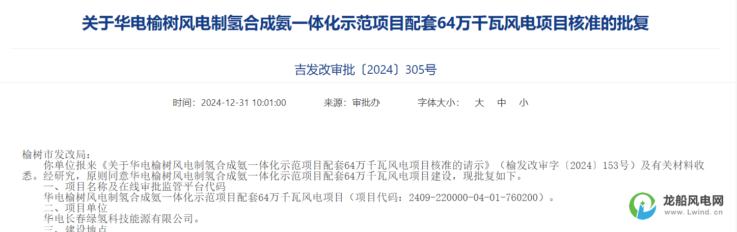 根據(jù)批復(fù),華電榆樹風(fēng)電制氫合成氨一體化示范項目配套16萬千瓦風(fēng)電項目建設(shè)地點位于榆樹市秀水鎮(zhèn)、大坡鎮(zhèn)、劉家鎮(zhèn)。項目新建單機容量10兆瓦風(fēng)電機組16臺,總裝機容量為160兆瓦,發(fā)電方式為自發(fā)自用余電上網(wǎng);新建1座220千伏升壓站;配套建設(shè)主變、箱變、集電線路、道路等附屬設(shè)施。該項目總投資74254.43萬元,建設(shè)期限12個月,項目單位為華電長春綠氫科技能源有限公司。