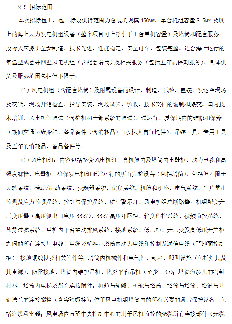 國(guó)家電投450MW海上風(fēng)電項(xiàng)目機(jī)組采購(gòu)招標(biāo),單機(jī)要求≥8.5MW