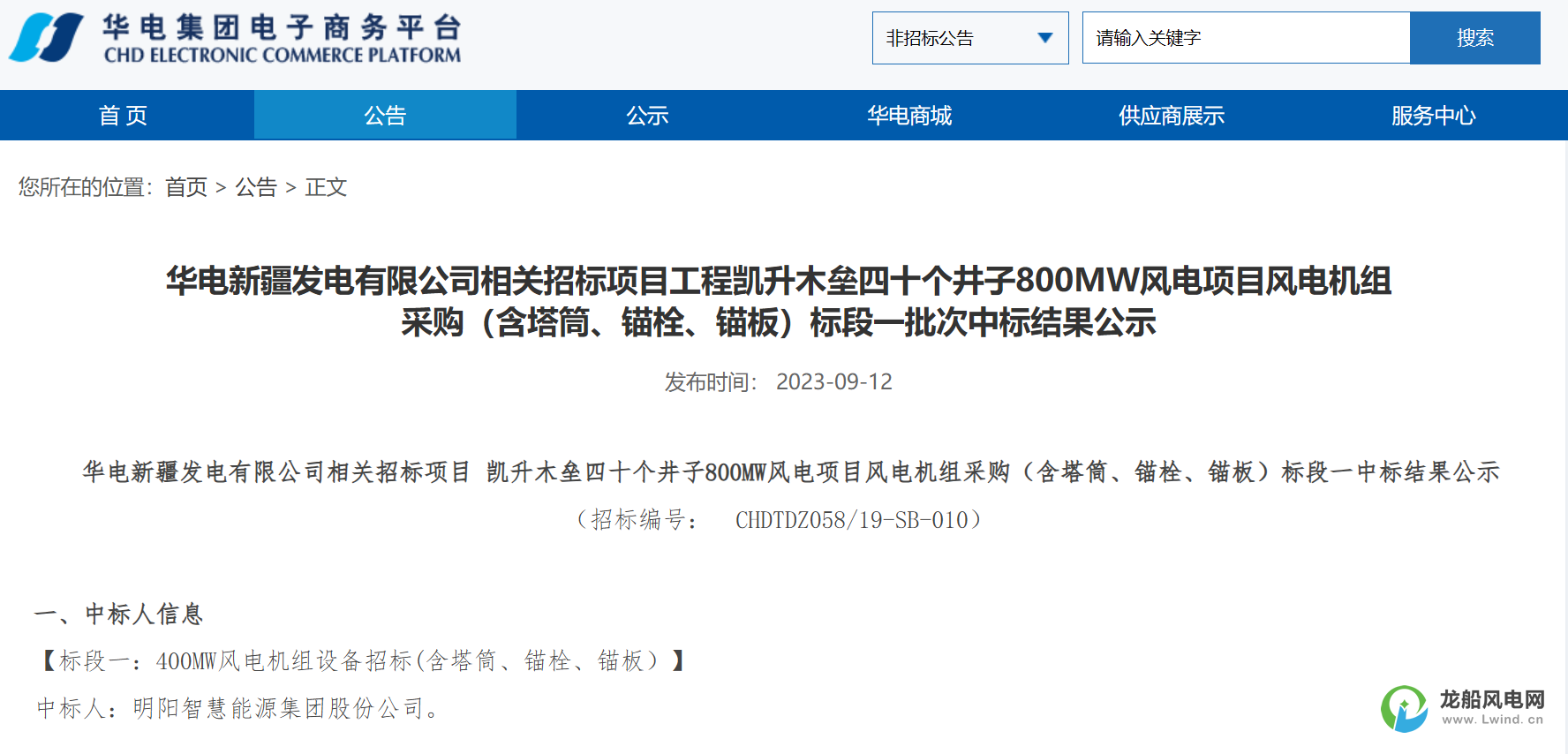 公告顯示,明陽智慧能源集團(tuán)股份公司成功中標(biāo)標(biāo)段一,中標(biāo)價(jià)格為59480.000000萬元。