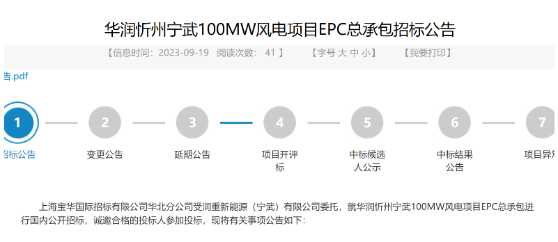 華潤(rùn)忻州寧武100MW風(fēng)電項(xiàng)目: