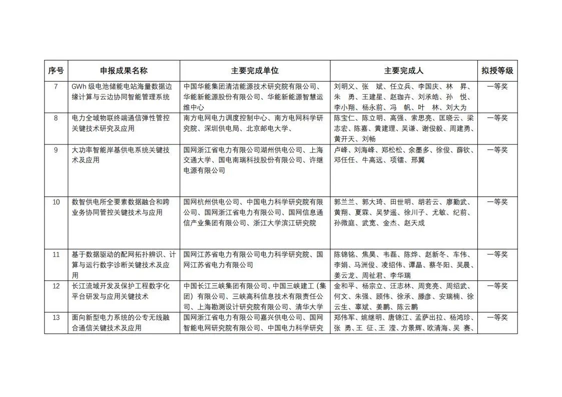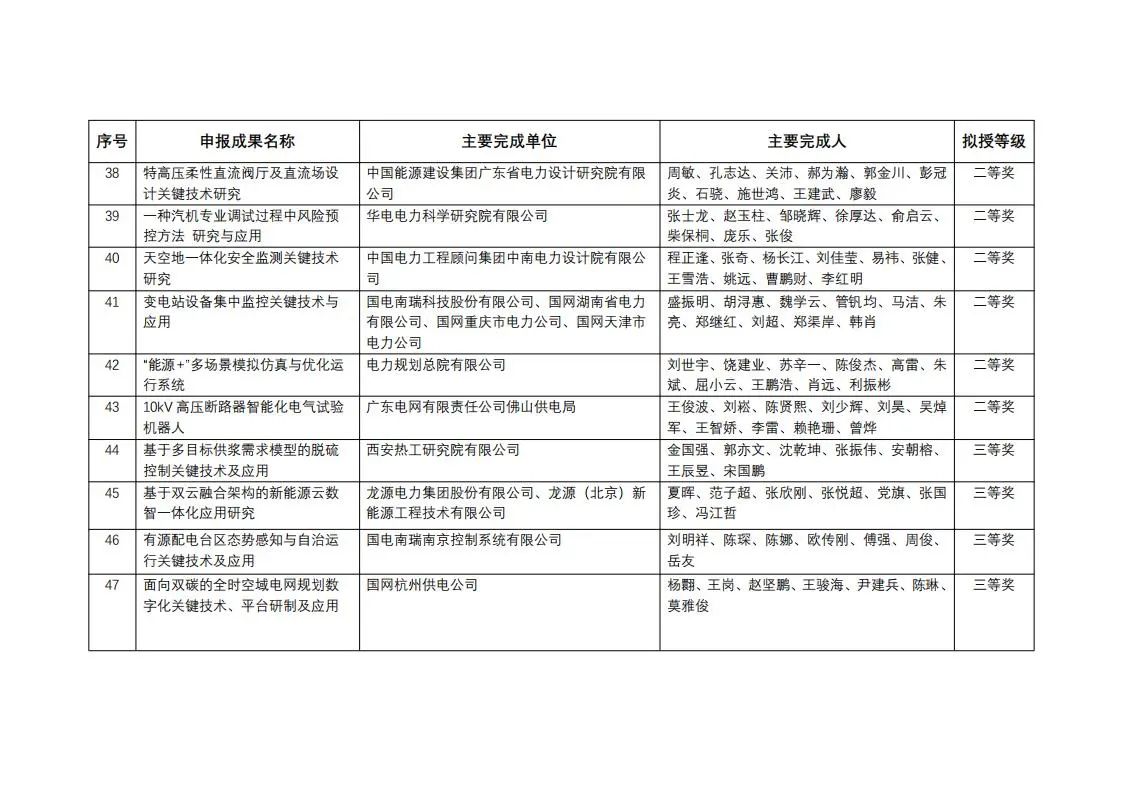 中國(guó)電力發(fā)展促進(jìn)會(huì)科學(xué)技術(shù)獎(jiǎng)2023年度擬授獎(jiǎng)成果公示