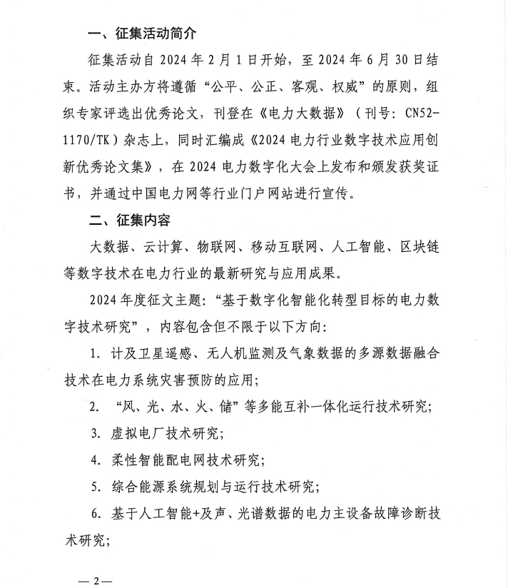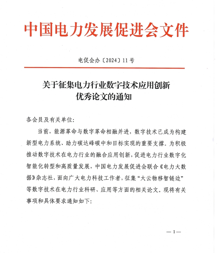 2024電力數(shù)字技術(shù)應(yīng)用優(yōu)秀論文征集通知