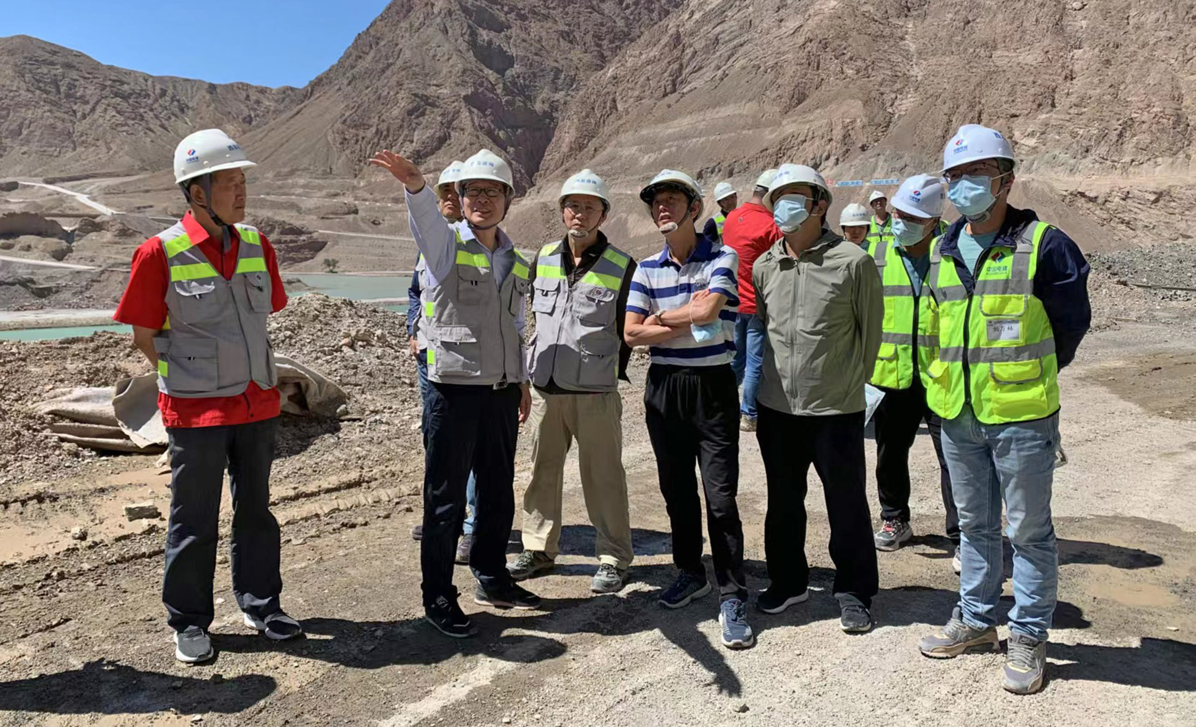▲2021年周恒(前排左二)在新疆大石峽水利樞紐工程施工現(xiàn)場開展工作