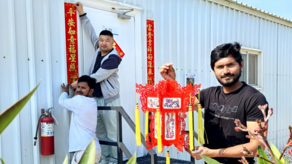 沙特國王港項(xiàng)目部精心策劃了一系列慶?;顒?,讓中外員工共度歡樂祥和的中國年。團(tuán)拜會上,項(xiàng)目部向全體員工送上新春祝福,感謝大家的辛勤付出,并鼓勵團(tuán)隊(duì)在新的一年再接再厲,共創(chuàng)佳績。中外員工歡聚一堂,傾情演出,互致問候,現(xiàn)場氣氛熱烈喜慶。除夕夜,項(xiàng)目部組織了包餃子活動,大家紛紛動手參與,搟皮、包餡、捏褶,忙得不亦樂乎。許多外籍員工在中國同事的指導(dǎo)下,第一次體驗(yàn)制作餃子的樂趣,感嘆這一傳統(tǒng)習(xí)俗的獨(dú)特魅力。年夜飯上,項(xiàng)目食堂特別準(zhǔn)備了豐盛的中式年菜,中外員工圍坐一堂,共享美食,暢談文化習(xí)俗。大家紛紛表示,將以更加飽滿的熱情投入工作,為項(xiàng)目高質(zhì)量履約貢獻(xiàn)力量,共同推動“一帶一路”建設(shè)邁上新臺階。
