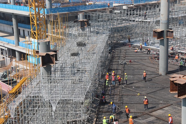 據了解,該項目混凝土主體結構已全面封頂,鋼結構屋蓋成功合攏,正在進行金屬屋面、玻璃幕墻施工。同時,二次結構及粗裝修已進入收尾階段,機電安裝,行李系統鋼平臺等專業(yè)正在全面穿插施工,項目正向著金屬屋面、玻璃幕墻施工節(jié)點目標進行沖刺。春節(jié)期間,整個項目機器不停,工人不停,進度不減,為年后精裝修施工提供了有力保障。