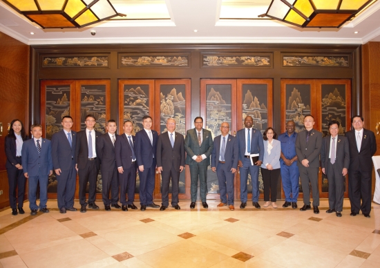 蘇里南共和國(guó)外交部長(zhǎng)拉姆丁、自然資源部長(zhǎng)阿比亞莫福、駐華大使張碧芬,公司有關(guān)部門(mén)、子企業(yè)負(fù)責(zé)人參加座談。(鐘洪明 盧華興)