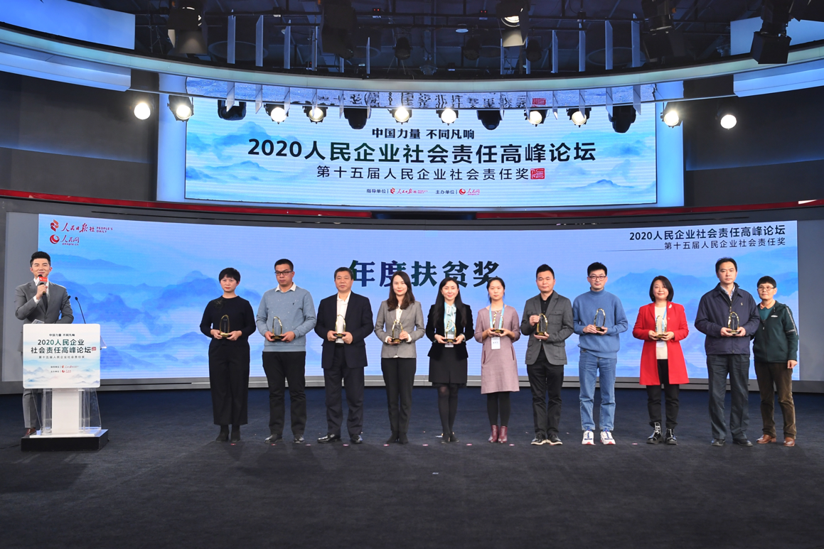12月12日,由人民日報(bào)社指導(dǎo),人民網(wǎng)主辦的“2020人民企業(yè)社會(huì)責(zé)任高峰論壇暨第十五屆人民企業(yè)社會(huì)責(zé)任獎(jiǎng)”在北京正式揭曉,本次以“中國力量  不同凡響”為主題,旨在表彰那些在逆境中勇于挑戰(zhàn),在挑戰(zhàn)中積極變革,在發(fā)展中不忘踐行社會(huì)責(zé)任的企業(yè)和機(jī)構(gòu)。國網(wǎng)信息通信股份有限公司(以下簡稱國網(wǎng)信通股份)憑借在助力脫貧攻堅(jiān)中充分展現(xiàn)企業(yè)的社會(huì)責(zé)任與擔(dān)當(dāng)?shù)耐怀霰憩F(xiàn),獲評“年度扶貧獎(jiǎng)”。