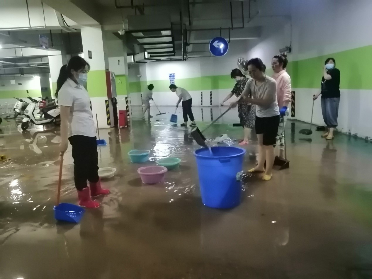 居住地為升龍?zhí)靺R廣場1號院小區(qū)的劉丹,是安質(zhì)部的員工,小區(qū)處于鄭州市中原區(qū),負(fù)二樓全部被淹沒,負(fù)一樓積水近半米。謝丹利用在下班時間,協(xié)助物業(yè)工作人員進(jìn)行車庫清淤工作。積水中混雜大量淤泥,無法使用機械清淤,大家都是使用掃帚、簸箕等簡單工具手工清理。7月26日晚間,小區(qū)負(fù)一樓地下車庫基本清理完畢,可以正常投入使用。