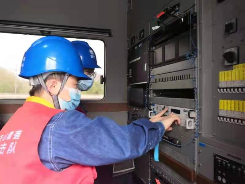 (圖為新疆思極員工為國(guó)電集控中心開(kāi)通調(diào)測(cè)電力專(zhuān)線)