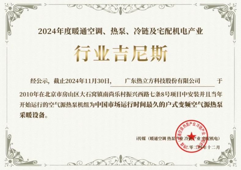 熱泵行業(yè)媒體i傳媒近日向熱立方地暖機(jī)頒發(fā)了一項(xiàng)榮譽(yù)——中國(guó)市場(chǎng)運(yùn)行時(shí)間最久的戶式變頻空氣源熱泵采暖設(shè)備。據(jù)了解,該設(shè)備于2010年在北京市房山區(qū)大石窩鎮(zhèn)南尚樂(lè)村振興西路七條8號(hào)項(xiàng)目中安裝,并且當(dāng)年開(kāi)始運(yùn)行,歷經(jīng)15個(gè)供暖季后,依然穩(wěn)定運(yùn)行無(wú)故障,創(chuàng)造了中國(guó)市場(chǎng)運(yùn)行時(shí)長(zhǎng)的行業(yè)紀(jì)錄。該項(xiàng)檢測(cè)由“建筑環(huán)能科技有限公司建筑環(huán)境與能源檢測(cè)院”完成檢測(cè)認(rèn)證。