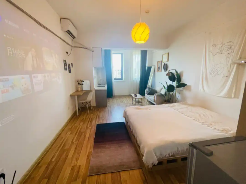 “還要什么吊頂?我連客廳都不需要!”剛裝修完單身公寓的嘉慧說道,她的房間沒有電視、沙發(fā)、茶幾,取而代之的是投影儀、茶幾、地毯。對她來講,鋪上喜歡的地毯比笨重的茶幾好多了,還可以自己布置氛圍感拉滿的家居小物。她說:“這是我的空間,不是客廳,在這里我可以隨遇而安!”