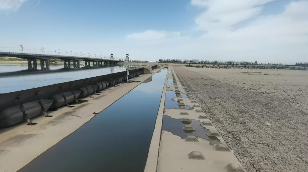 ▲圖3 2023年8月24日,督察組暗查發(fā)現,甘州區(qū)在黑河新城大橋下游建設橡膠壩蓄水