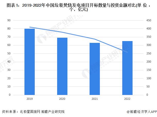 垃圾焚燒發(fā)電行業(yè)在歷經(jīng)“跑馬圈地”、“搶裝潮”等時(shí)期后,進(jìn)入冷靜發(fā)展期。北極星固廢網(wǎng)統(tǒng)計(jì)了2019年-2022年的垃圾焚燒發(fā)電項(xiàng)目開(kāi)標(biāo)數(shù)量以及投資總額,整體呈逐年下滑趨勢(shì)。2022年中國(guó)垃圾焚燒發(fā)電項(xiàng)目開(kāi)標(biāo)數(shù)量下降為65項(xiàng),總投資金額為258億元。