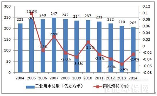 在我國工業(yè)企業(yè)用水效率不高,導致我國工業(yè)企業(yè)用水量大,工業(yè)廢水排放多,迚一步加劇了我國水資源短缺的困境。根據(jù)水利部的統(tǒng)計,盡管我國萬元工業(yè)增加值用水量呈現(xiàn)出不斷下降的趨勢,2014 年萬元工業(yè)增加值用水量59.5 立方米(當年價),按可比價計算比2010 年下降32%。但與發(fā)達國家相比我國萬元工業(yè)增加值用水量較大,工業(yè)企業(yè)用水效率有待迚一步提高。在水資源緊缺的背景下,提高工業(yè)用水效率,降低工業(yè)對水資源過量消耗成為生態(tài)文明建設的必然要求,近期出臺的水十條明確提出,提高用水效率,到2020 年全國萬元工業(yè)增加值用水量比2013 年下降30%以上;抓好工業(yè)節(jié)水制定國家鼓勵和淘汰的用水技術、工藝、產(chǎn)品和設備目彔,完善高耗水行業(yè)取用水定額標準。我們認為中水回用和廢水零排放成為工業(yè)廢水處理的下一個主攻方向,相關企業(yè)發(fā)展前景廣闊。
