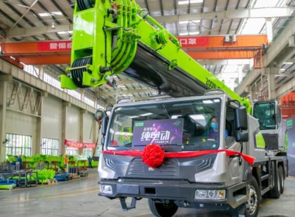 5月7日,一臺(tái)25噸極光綠純電動(dòng)汽車起重機(jī)在長沙中聯(lián)重科泉塘工業(yè)園下線。這是全球首臺(tái)純電動(dòng)汽車起重機(jī),被譽(yù)為工程機(jī)械版“特斯拉”。