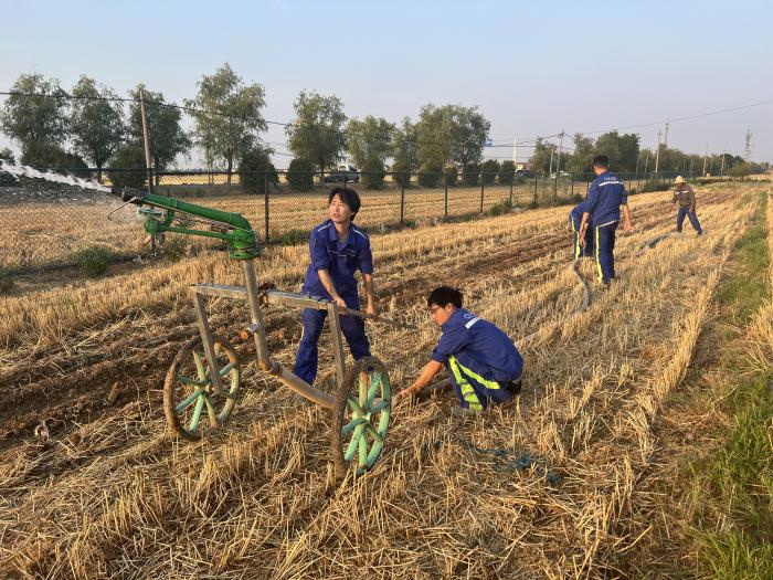 風(fēng)電河南區(qū)域公司員工協(xié)助河南省尉氏縣多個(gè)村莊村民對(duì)農(nóng)田里的農(nóng)作物進(jìn)行澆灌
