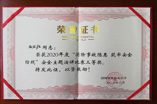6月18日,該公司新入司大學(xué)生趙志強(qiáng)參加國(guó)網(wǎng)張掖供電公司安全生產(chǎn)月演講比賽,公司《從零開始 向零奮斗》榮獲演講比賽三等獎(jiǎng)。