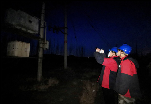 該公司為確保電網(wǎng)安全穩(wěn)定運行,認真制定了線路特殊巡視計劃。此次巡視主要對區(qū)域內(nèi)重要線路進行防止外力破壞巡視、電氣連接部分有無發(fā)熱現(xiàn)象、大風天氣過后線路有無搭掛異物、檢查桿塔基礎和電桿防撞標識是否完好等。巡視人員不懼嚴寒,手持冰冷的儀器,全力以赴完成線路的巡視檢查工作。當夜幕降臨,萬家燈火都亮了起來的時候,巡視人員又開始對線路、設備進行紅外線測溫工作。他們手持紅外線成像儀,重點對線路電氣連接點、真空開關、隔離開關、配電變壓器、電纜接頭等容易發(fā)生故障的位置進行了夜間巡視和紅外線測溫。