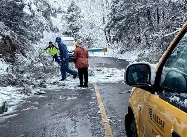 花梨供電所搶修途中清理路障。張亞周攝