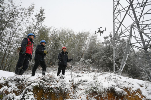 當天,邵武市供電公司各生產(chǎn)部門組織特巡人員到高海拔桂林線、金坑線、沿金線等線路進行防覆冰特巡。寒風呼呼地刮著,巡視途中,山高路滑,該公司特巡人員認真檢查桿基、桿身、線路,并進行設備測溫,檢查設備健康運行狀況。巡視過程中,巡視人員鼻子被吹得通紅,雪花飄落在他們身上,淋濕了他們的衣服,凍僵了他們的身體,但他們?nèi)徊活?,拍拍身上的雪花,繼續(xù)在大山深處沿著線路前行,排除安全隱患。