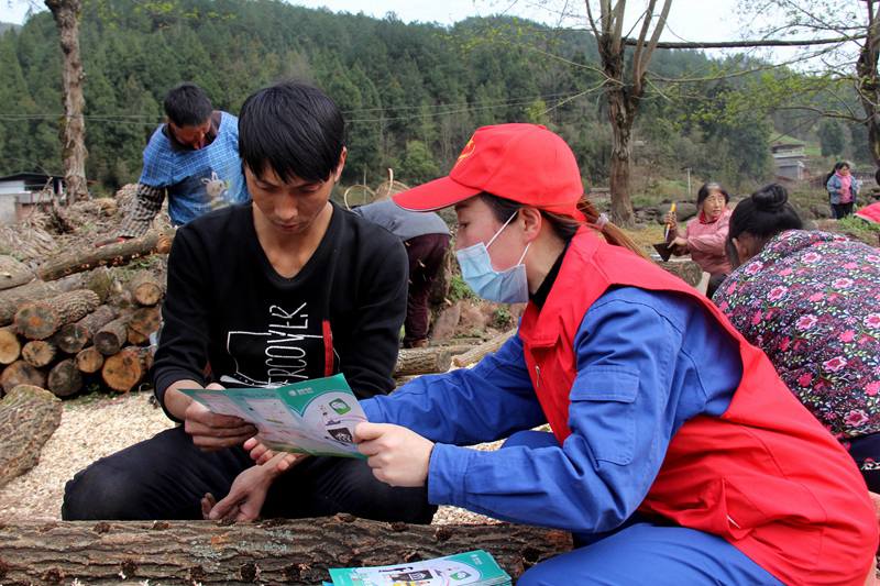 圖為:2020年3月9日,在位于四川省巴中市通江縣陳河鄉(xiāng)陳家壩村的四川裕德源生態(tài)科技有限公司陳河基地里,國網(wǎng)通江縣供電公司“紅星”志愿者為企業(yè)工人講解安全用電常識。程聰攝