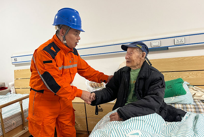 10月11日重陽節(jié),國網(wǎng)四川電力(資陽安岳)連心橋共產(chǎn)黨員服務(wù)隊前往安岳縣馨福老年康養(yǎng)中心,看望慰問蔣有廷、蔣倫兩位百歲抗戰(zhàn)老兵,向他們致以親切的節(jié)日問候和崇高的敬意。