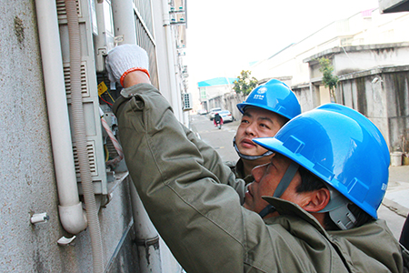 中國電力網(wǎng)訊 1月11日,江蘇連云港東??h供電公司營銷管理人員吳東華、李金在牛山鎮(zhèn)王東村檢查用戶表計(jì)用電情況。
