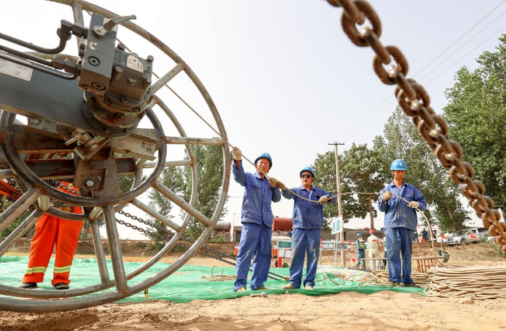 近日,河北省石家莊晉州市氣溫持續(xù)攀升,在河北石家莊晉州園區(qū)110千伏輸變電線路工程施工現(xiàn)場(chǎng),國(guó)網(wǎng)石家莊供電公司的50多名施工人員正在有條不紊地開展張力放線施工作業(yè)。
