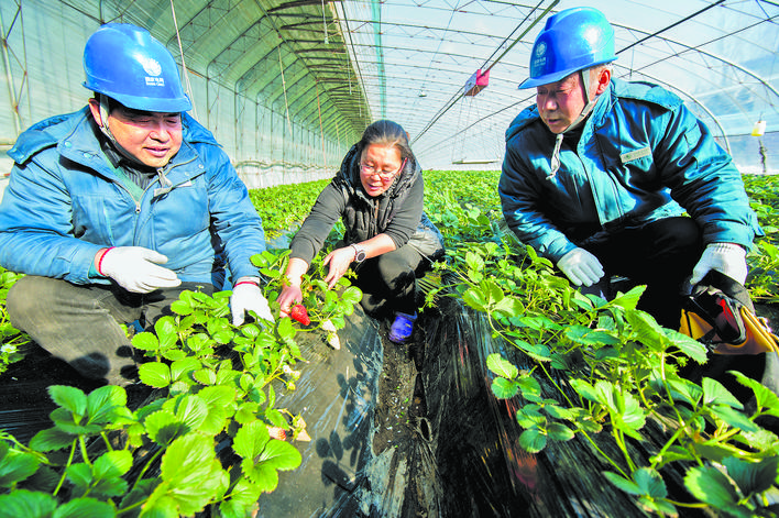 1月18日,山東萊西市供電公司馬連莊供電所員工來(lái)到馬連莊鎮(zhèn)草莓種植基地,檢查大棚內(nèi)外的線路和補(bǔ)光燈、運(yùn)輸機(jī)、卷簾機(jī)等用電設(shè)備,保障種植戶用電安全。“供電服務(wù)真不孬,俺一點(diǎn)也不用為用電的事操心。”草莓種植戶王勇說(shuō)。