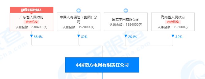 根據(jù)公開資料查詢,本次調(diào)整前中國南方電網(wǎng)總注冊資本為600億元。共有4家股東,股本比例是:廣東省人民政府出資230.4億,占比38.4%,為第一大股東,中國人壽保險(集團)公司出資192億,占比32%,排名第二,國家電網(wǎng)有限公司出資158.4億,占比26.4%,排名第三,海南省人民政府認繳19.2億,占比3.2%,排名最末。