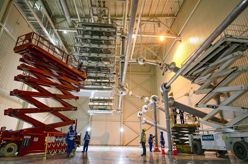 國(guó)網(wǎng)江蘇電力員工在±800千伏泰州換流站開(kāi)展年度檢修,做好迎峰度夏準(zhǔn)備。