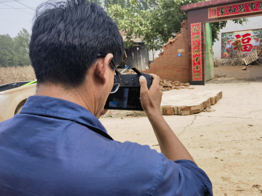 目前農(nóng)村部分地區(qū)水還未退,河北保定涿州供電公司刁窩供電所員工用無人機巡查倒桿情況,為接下來的重建做準備。(陸暢)