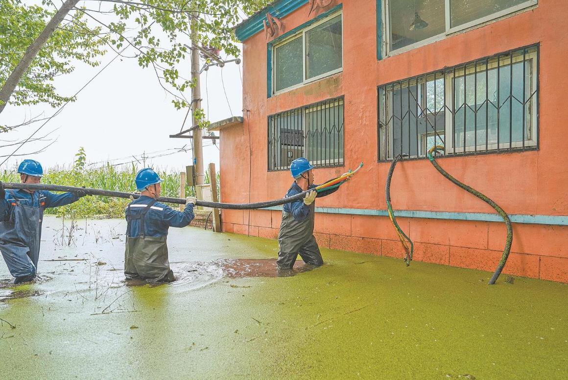 鞍山供電公司搶修人員緊急接通臨時電源,保障排水系統(tǒng)用電。趙琦林 攝