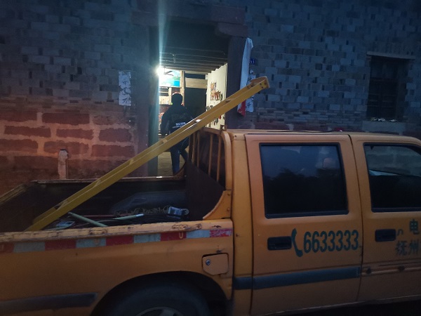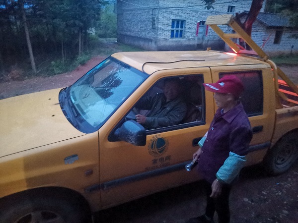 “太好了,你們來了,這下晚上可以不用摸黑了……”18時(shí)55分,經(jīng)過25分鐘的車程,陳文清班長和班員到達(dá)陳家蕪頭村,陳德文和老伴正打 著手電筒,看到供電搶修車的到來,很是激動。