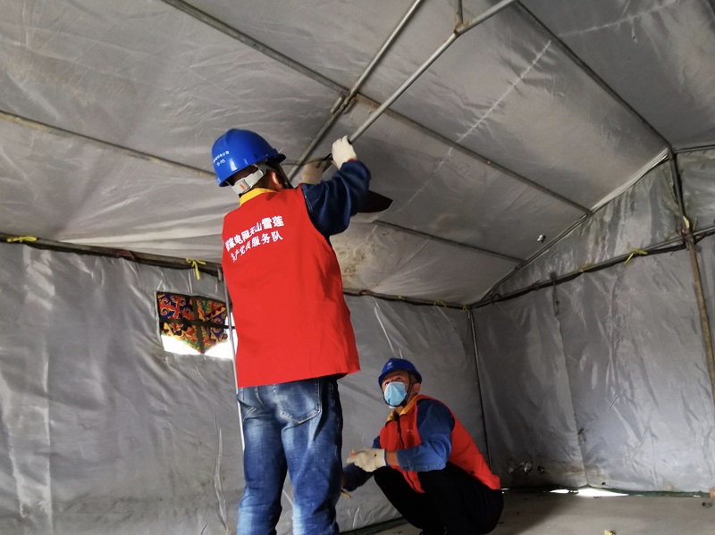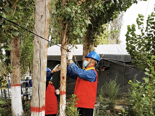 還沒休息幾分鐘又接到伊寧縣奎太買里村委會(huì)電話,“夏師傅,村委會(huì)要在村口建一個(gè)疫情檢查點(diǎn),需要接電照明,你們趕緊來處理一下。”黨員服務(wù)隊(duì)隊(duì)員夏文亮與他的搭檔做好消毒工作后,帶上安全工器具立即前往村委會(huì)防疫點(diǎn),經(jīng)過半個(gè)多小時(shí)的工作,村委會(huì)防疫點(diǎn)帳篷內(nèi)照明燈亮起來了。
