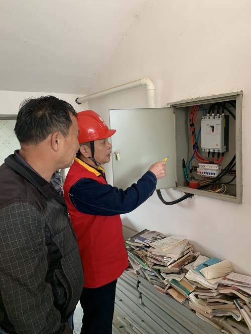 中國電力網(wǎng)訊 11月1日,國網(wǎng)東安縣供電公司共產(chǎn)黨員服務(wù)隊(duì)隊(duì)員前往蘆洪市新民村村委會(huì),對村委會(huì)辦公樓設(shè)備的線路、開關(guān)等進(jìn)行安全檢查,檢查電線市否外露破損或老化、線路絕緣是否良好,同時(shí)向村委會(huì)工作人員講解安全用電知識(shí),有力保障用戶安全用電。