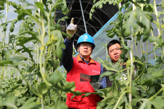 眼下,正值西瓜的膨果期,郝建正根據(jù)土壤濕潤程度使用滴灌設(shè)備進(jìn)行澆灌,就迎來了電力“紅馬甲”的上門服務(wù)。
