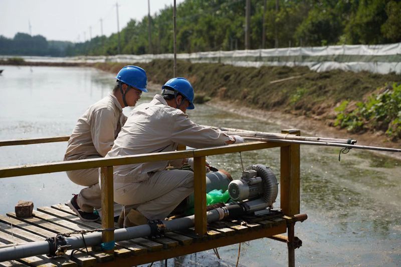 本網(wǎng)訊 連日來(lái),國(guó)網(wǎng)江蘇電力睢寧縣供電公司工作人員來(lái)到魏集鎮(zhèn),對(duì)水產(chǎn)養(yǎng)殖戶用電設(shè)備開(kāi)展隱患排查,重點(diǎn)對(duì)充氧設(shè)備、漏電保護(hù)裝置進(jìn)行安全檢查,同時(shí)向客戶了解用電需求,講解安全用電注意事項(xiàng),為水產(chǎn)養(yǎng)殖戶致富增收提供可靠電力保障。