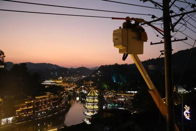 “每天晚上七點(diǎn)半,鳳凰古城的燈光會(huì)統(tǒng)一亮起,‘翠翠的水上婚禮’也會(huì)準(zhǔn)時(shí)在古城沱江中開(kāi)演,屆時(shí)來(lái)鳳凰游玩的旅客們都會(huì)聚集在兩岸觀看表演。”城北服務(wù)站站長(zhǎng)龍小明介紹,近兩年來(lái),鳳凰縣政府依托鳳凰古城的旅游優(yōu)勢(shì),大力推廣旅游業(yè)發(fā)展,通過(guò)全域亮化,將古城吊腳樓與夜景燈光緊密相結(jié)合,并打造出了“翠翠的水上婚禮”“燈光秀”等一系列觀賞項(xiàng)目。該公司積極對(duì)接古城用電需求,對(duì)原有的線路設(shè)備進(jìn)行升級(jí)改造,讓古城燈火更明,美景更甚。