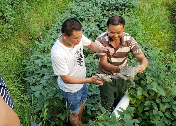谷崗鄉(xiāng)登仙橋村早禾嵊組貧困戶歐陽(yáng)高平在樂(lè)安縣公司的幫扶下養(yǎng)殖甲魚