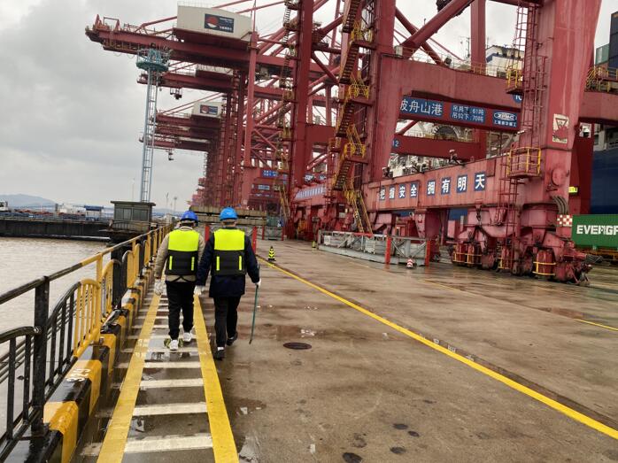 受冷空氣侵襲,寧波氣溫全面下降,又恰逢接連兩天的冬雨,濕冷的環(huán)境給高壓岸電巡檢工作帶來(lái)了嚴(yán)峻的考驗(yàn)。為保證巡檢工作按時(shí)完成,國(guó)網(wǎng)寧波供電公司高壓岸電運(yùn)維小隊(duì)人員不畏嚴(yán)寒,順利完成了高壓岸電箱變內(nèi)各電源設(shè)備運(yùn)行情況、箱變到前沿接電箱間連接電纜破損情況以及前沿接電箱插口腐蝕情況進(jìn)行常規(guī)性檢查。