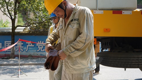 “帶電作業(yè)的方法有三種,分別是中間電位作業(yè)法、地電位作業(yè)法以及等電位作業(yè)法,今天我們采用的中間電位作業(yè)法。今天天氣不錯(cuò),雖然溫度高,但濕度低,能夠滿足帶電作業(yè)條件。帶電作業(yè)必須身著密不透風(fēng)的絕緣套裝,在高溫下,作業(yè)人員體感往往會(huì)達(dá)到60℃。雖然辛苦,但只要能少停電,盡可能的給人民群眾帶去清涼,再苦再累都值得。”帶電作業(yè)班班長(zhǎng)張敏說道。
